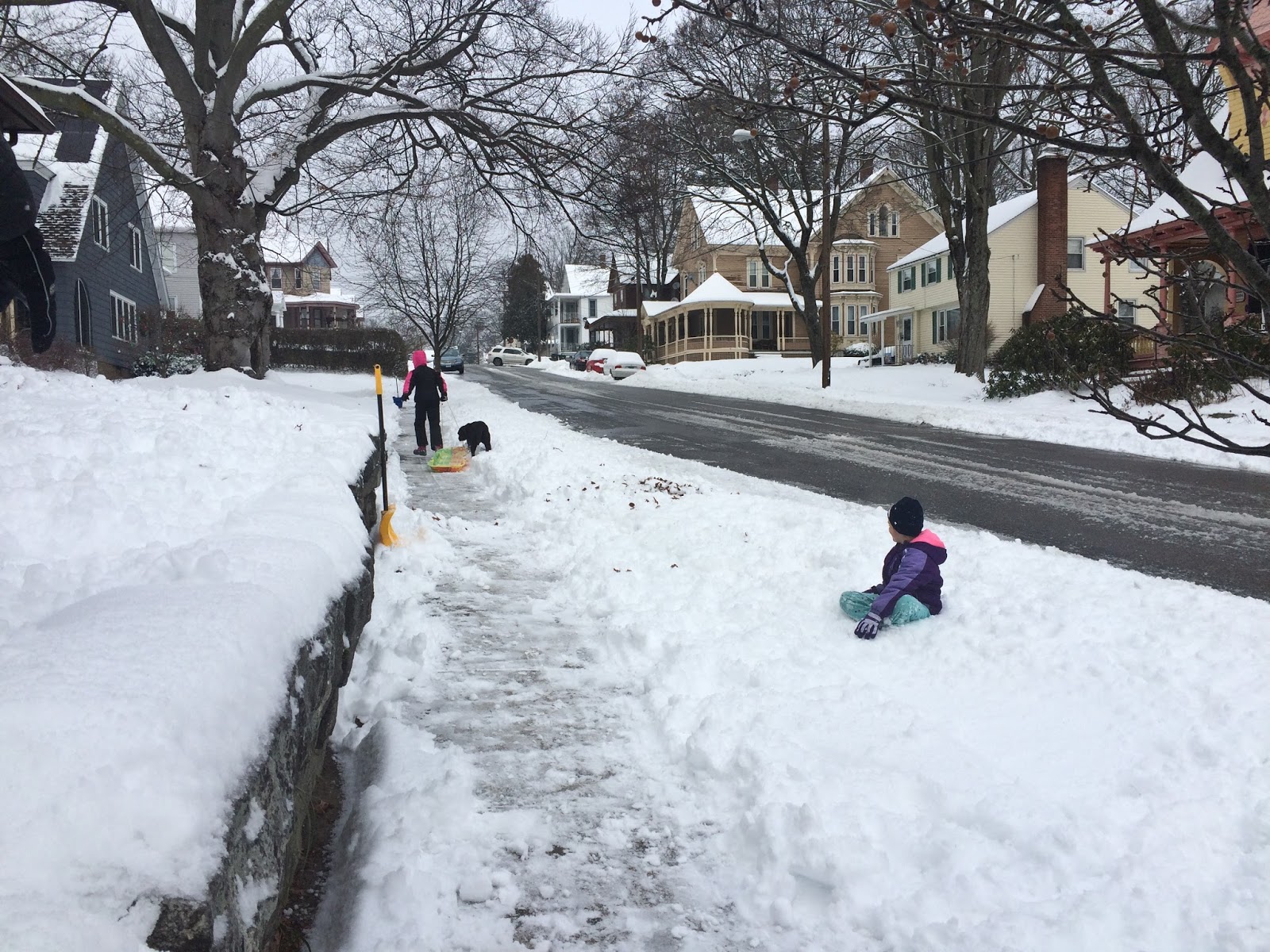 Shenanigans at the old house. Shaun and I were outside shoveling and all was quiet and then we heard squeals and laughter coming from the top of the hill. The girls had brought the sled and were going down the sidewalk. I flashed back to so many times of them riding, walking, biking down this hill in front of the house. So many good years there.